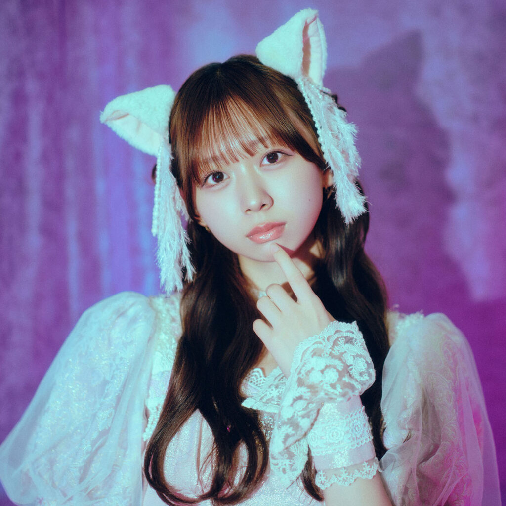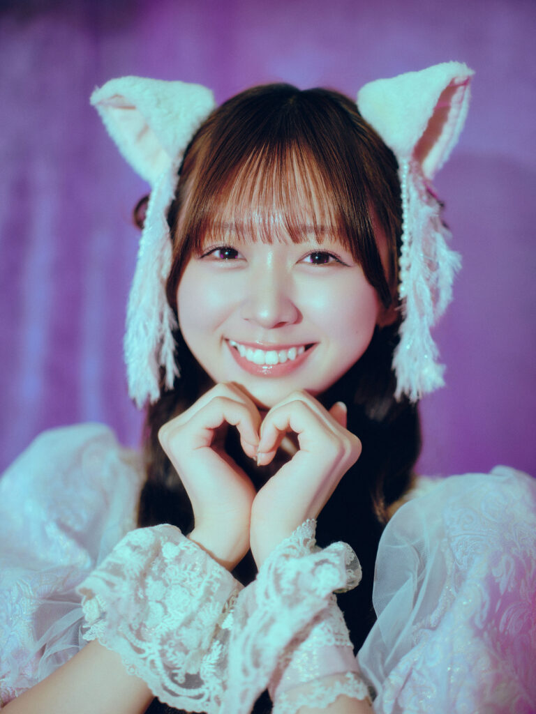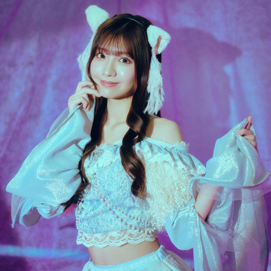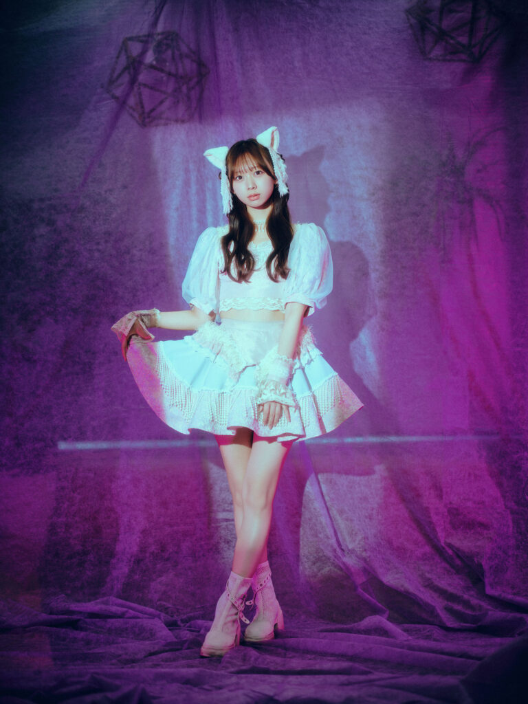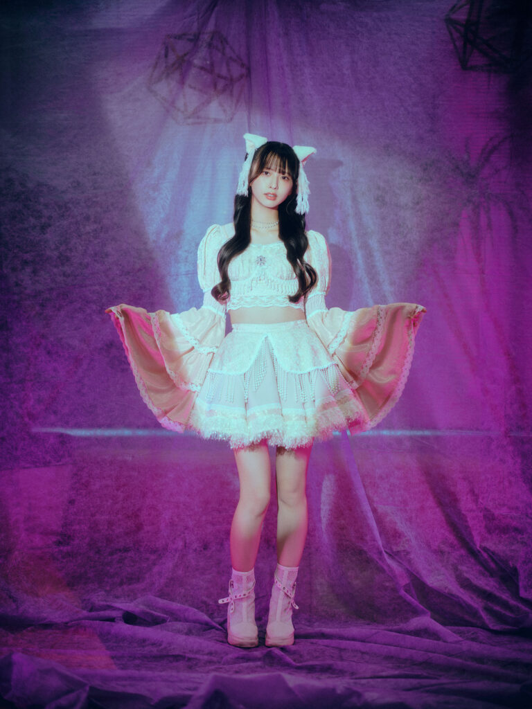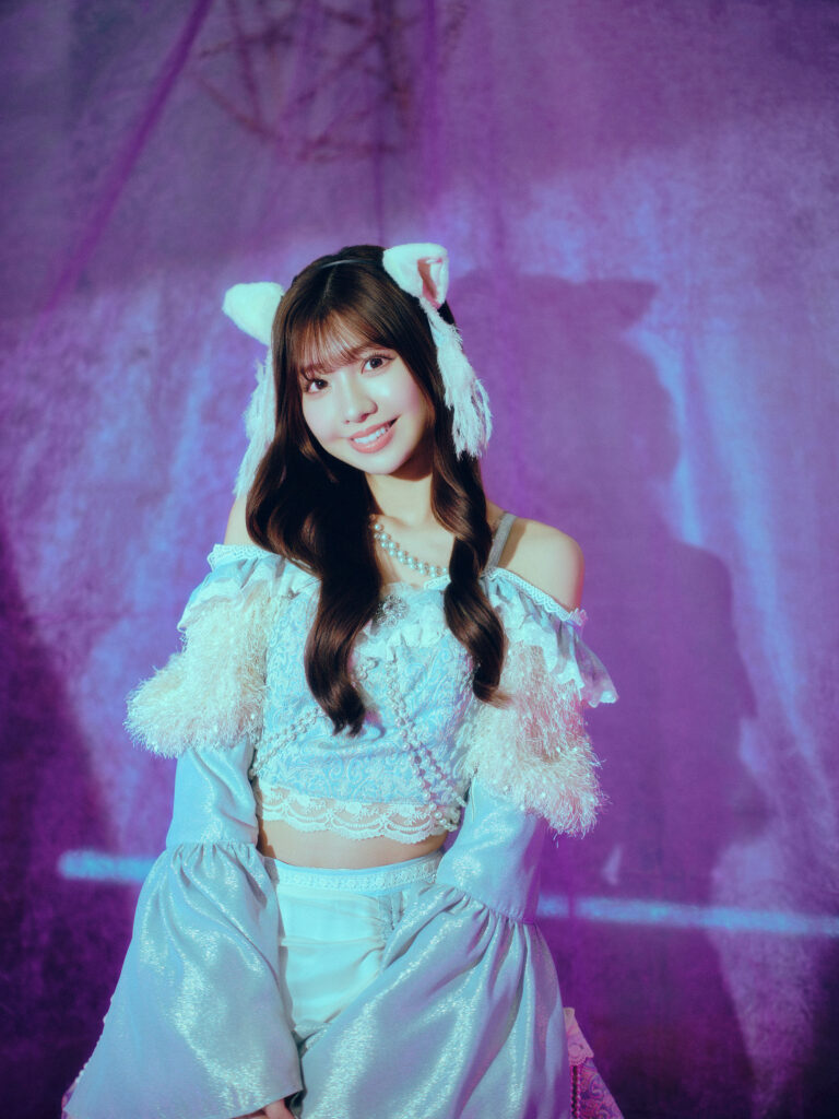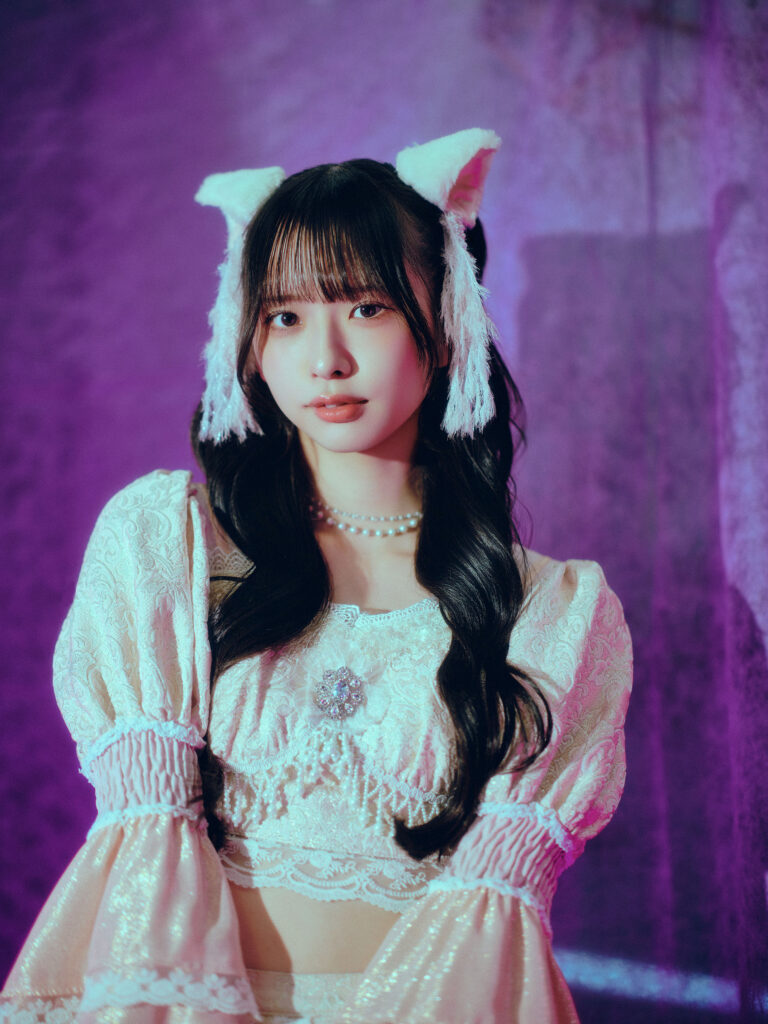 松田:この耳から下がった耳毛がとても好きなんです♡ 猫耳は10年ずっとトレードマークとして付けて来ているんです。耳の形や大きさについて、メンバーが要望することがあって、こだわりをもっています。今回、珍しい装飾が付いているのが、個人的にはテンション上がるポイントでした。パールが付いて、上品な感じも高貴な猫っぽくて大好きです。衣装もポップではなくキレイめな感じで、姫っぽさがあって嬉しいです。