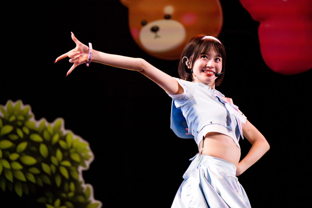 間髪入れずに始まった2曲目は「らいあーらいあー」。『more than kawaii』をコンセプトとした2025年1月15日リリースのシングル。可愛さだけじゃない魅力に気づいてほしい乙女心を表現したナンバー。ノリの良いポップカルチャーなダンスで、会場の熱気はさらに上昇!