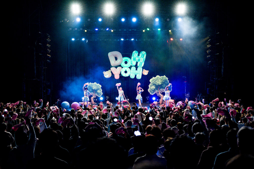 流れてきたのは、“DOH YOH”シリーズ2作品目の「KIBIDANGO」。2025年10月22日リリースの「KIBIDANGO」は、シリーズの中でももっとも重低音なサウンド。特に後半の「どんぶらこ」を繰り返す部分では、観客とも一体になれるナンバーだ。